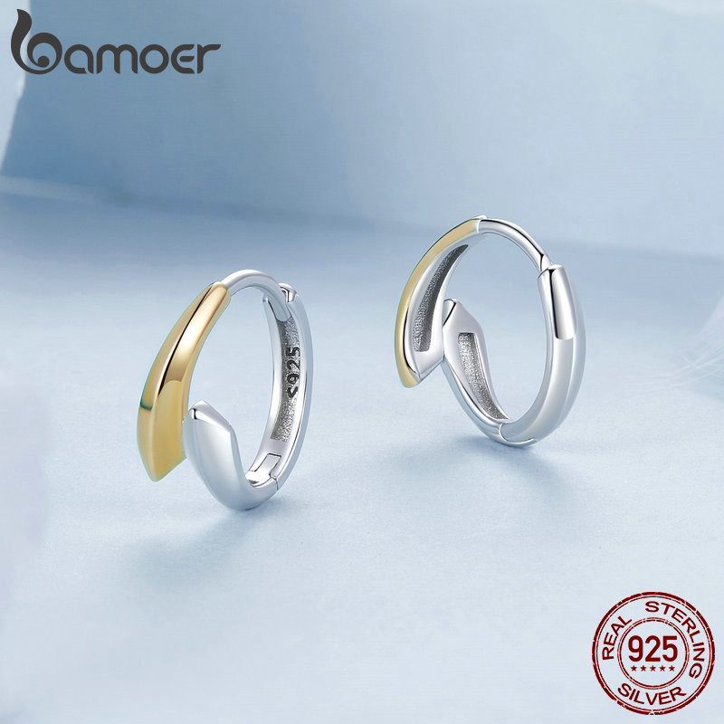 Brincos Bamoer 925 Sterling Sliver Hoop De Dois Tons De Design Simples Jóias De Ocasião Diária Presentes Para Mulheres