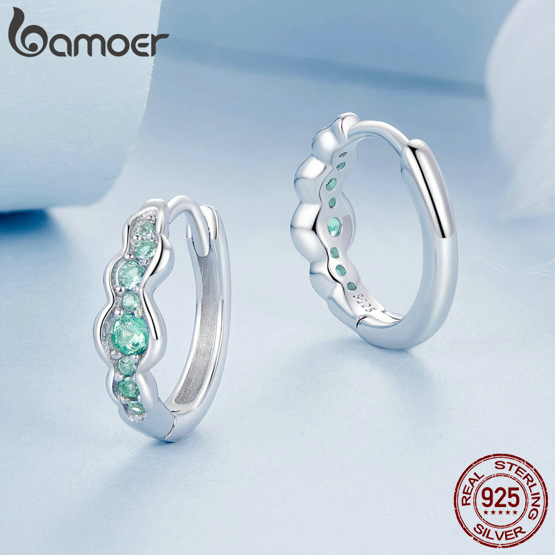 Brincos Bamoer 925 Sterling Sliver Hoop De Onda Verde Design Jóias Presentes Para Mulheres