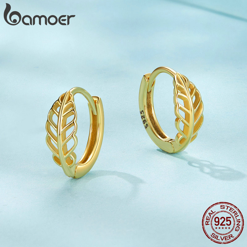 Brincos Bamoer 925 Sterling Sliver Hoop De Outono Jóias De Folha Para Mulheres