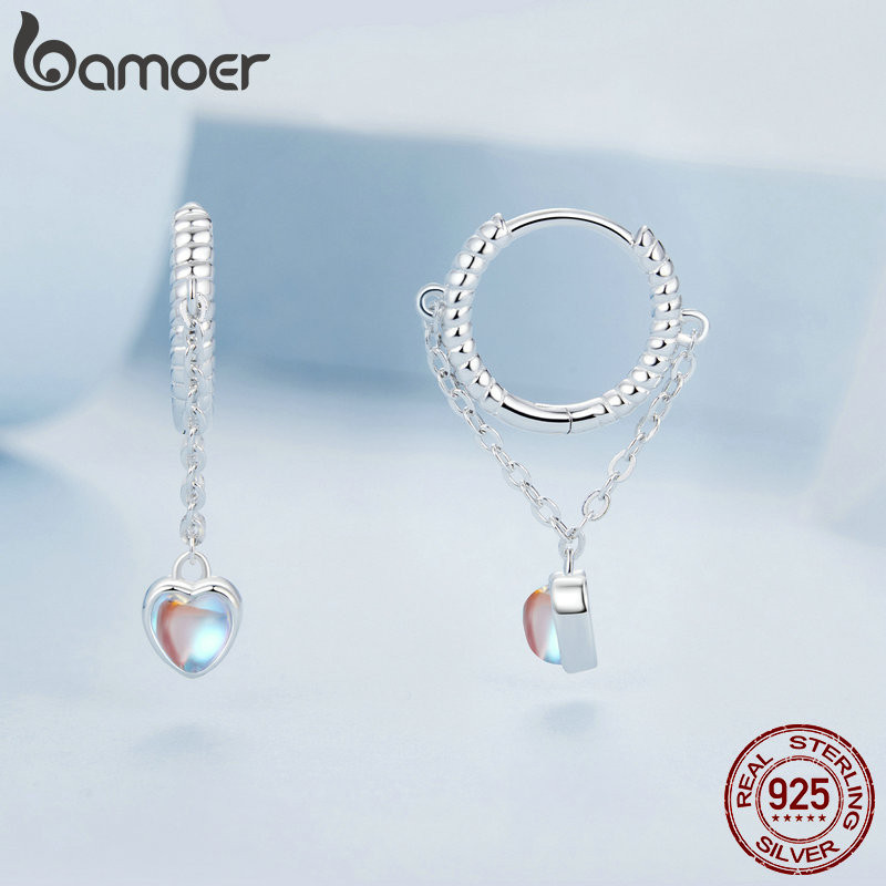 Brincos Bamoer 925 Sterling Sliver Hoop Desenho Do Coração Jóias Presentes Para Mulheres
