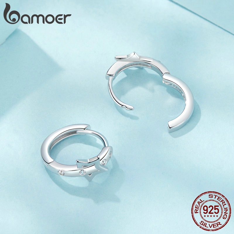 Brincos Bamoer 925 Sterling Sliver Hoop Star Belt Design Jóias Presentes Para Mulheres