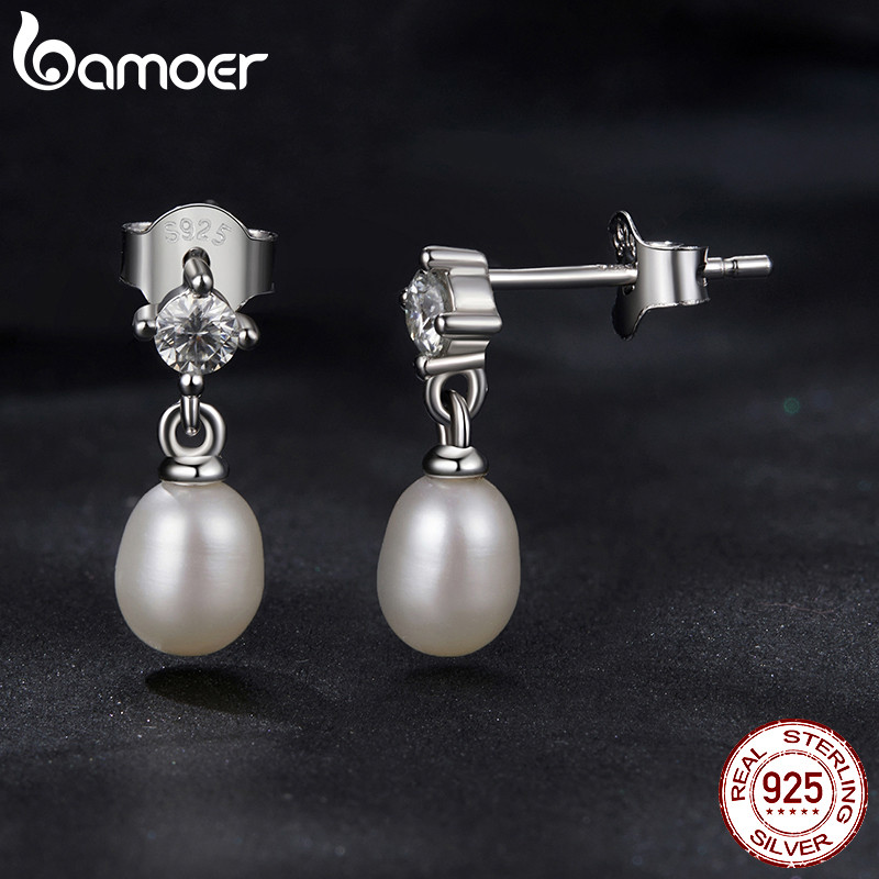 Brincos Bamoer 925 Sterling Sliver Moissanite Pérolas Design Joias Presentes Para Mulheres