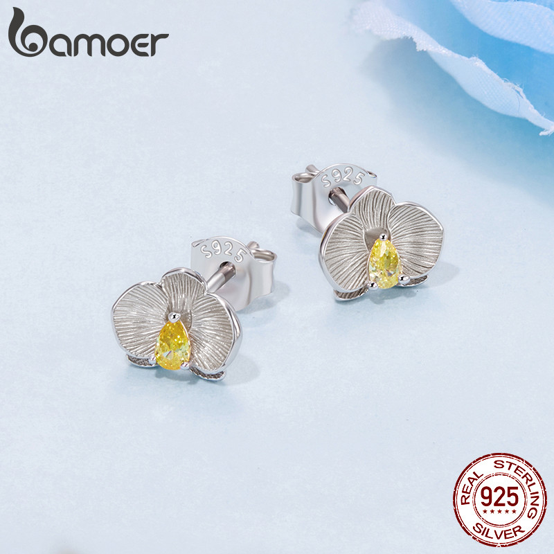 Brincos Bamoer 925 Sterling Sliver Phalaenopsis Design Joias Presentes Para Mulheres