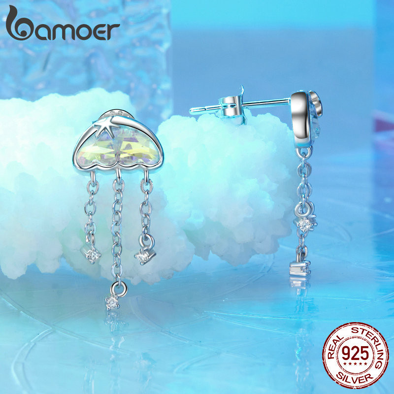 Brincos Bamoer 925 Sterling Sliver Stud Iridescentes Jellyfish Design Jóias Presentes Para Mulheres