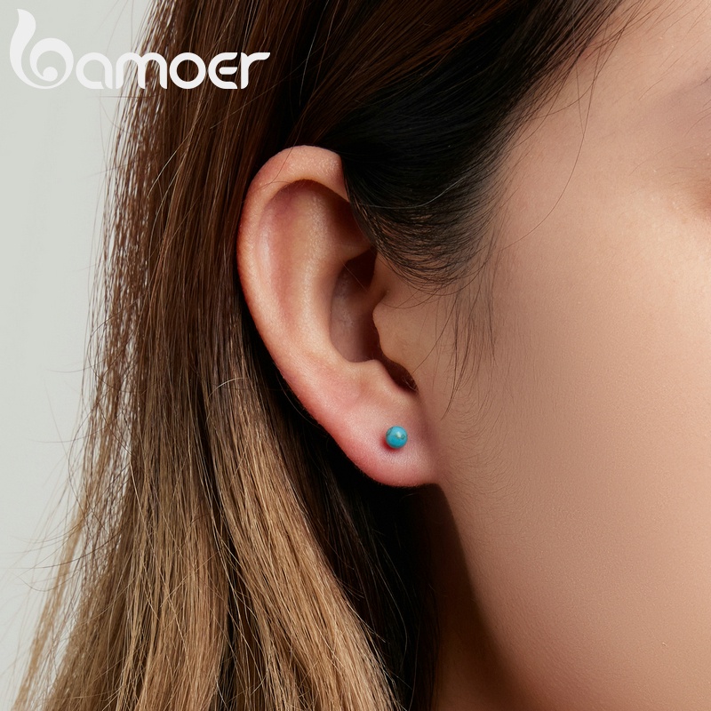 Brincos Bamoer Prata 925 1 Par Simples Turquesa Pérolas Presentes Para Jóias De Moda Feminina