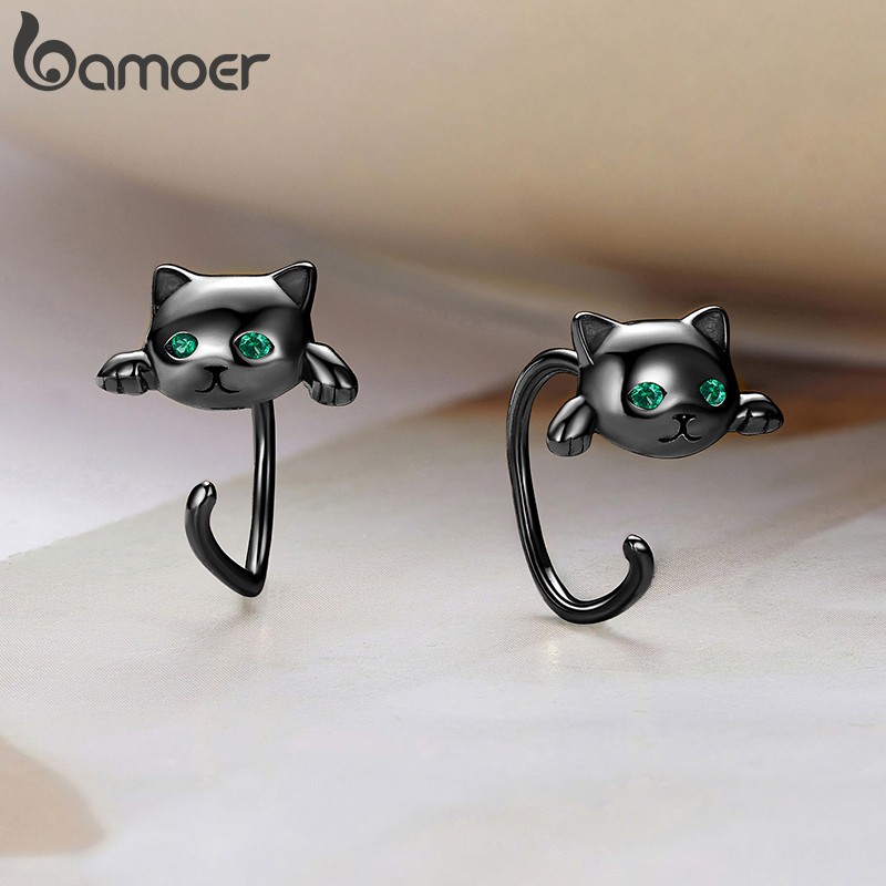 Brincos Bamoer Preto Bonito Ganchos De Orelha De Gato Para Mulheres Meninas Joias Da Moda