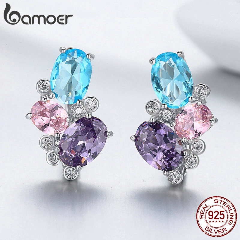 Brincos Bamoer Stud Para Mulher Clássico 925 Prata Esterlina Colorida Zircon SCE579