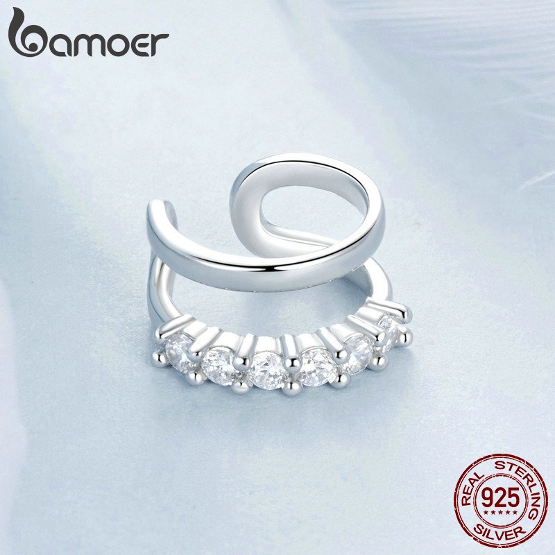 Brincos De 1 Peça Bamoer 925 Sterling Sliver Dupla Camada De Uma De Orelha Jóias De Punho Para Mulheres
