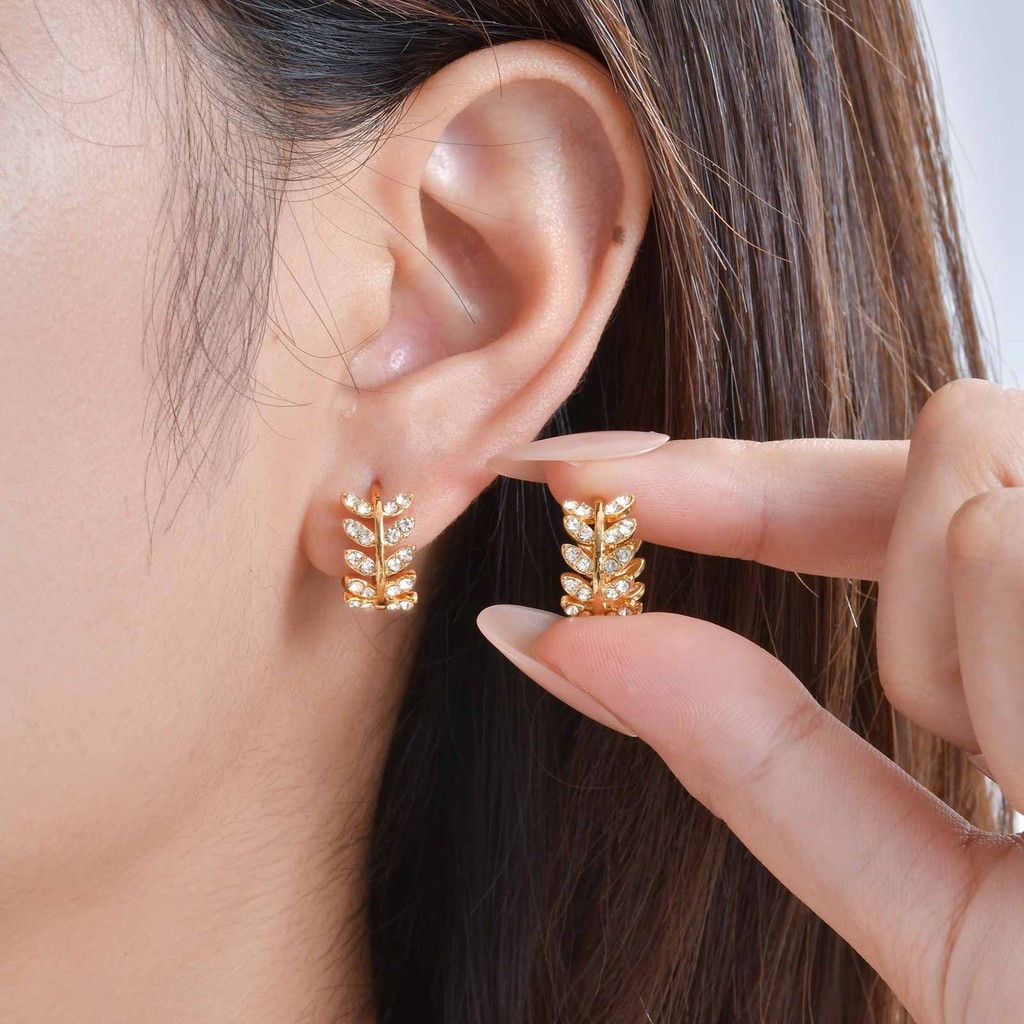 Brincos De Argola Com Folhas Brilhantes Cúbicas De Zircônia Vnox , Joias Femininas Hipoalergênicas Banhadas A Ouro Delic