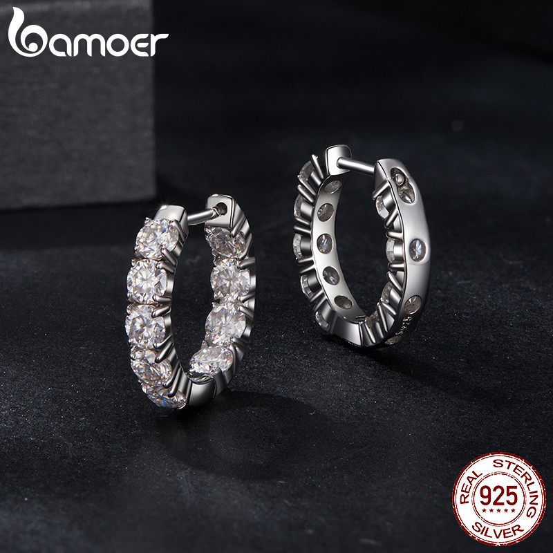 Brincos De Argola De Moissanite De Prata Esterlina 925 Bamoer Joias Brilhantes Presente Para Mulheres