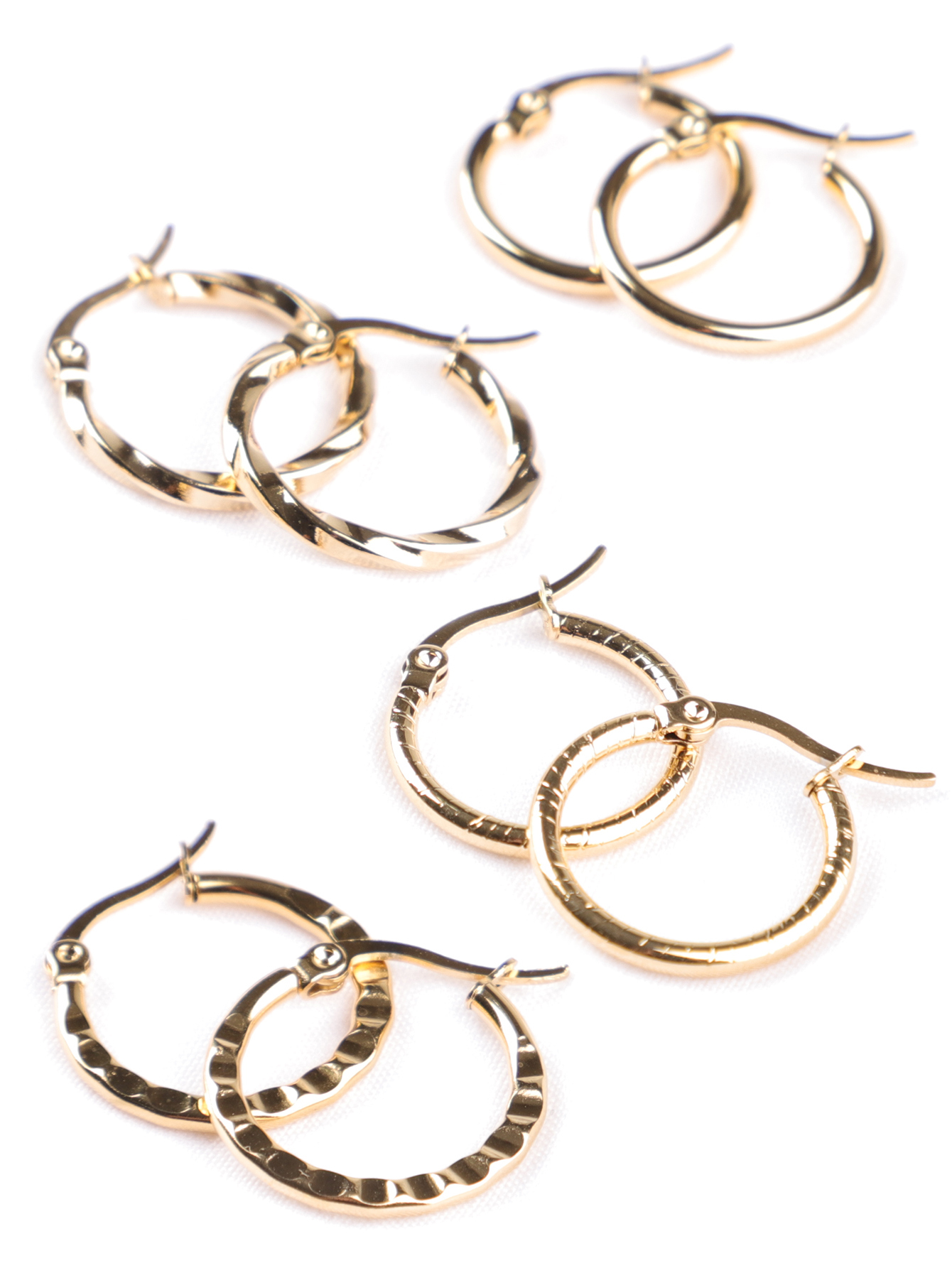 Brincos De Argola Dourados De 4 Pares Para Mulheres – Conjunto Versátil De Círculo Hipoalergênico De Aço Inoxidável Uso