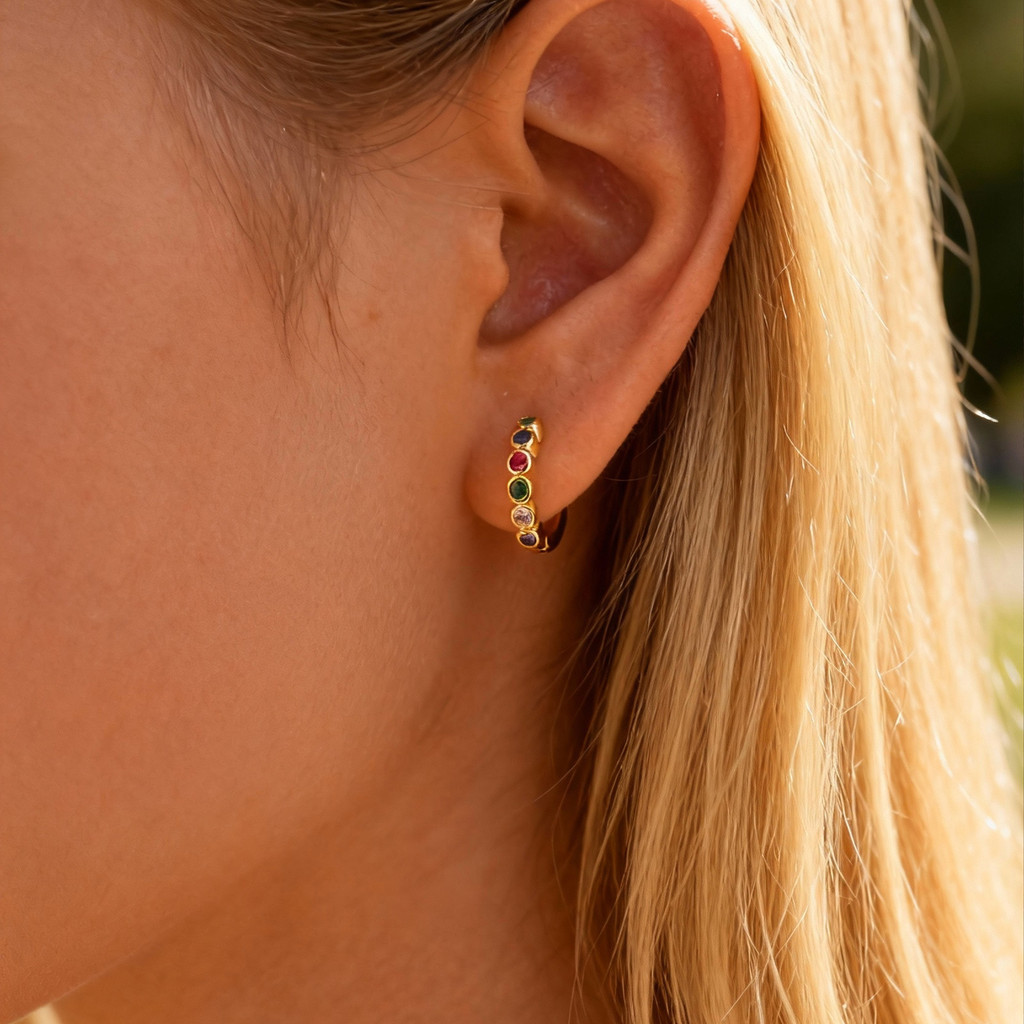 Brincos De Argola Huggie De Zircônia Colorida Vnox Para Mulheres E Meninas , Brinco De Casamento Fashion Em Ouro 18K , P