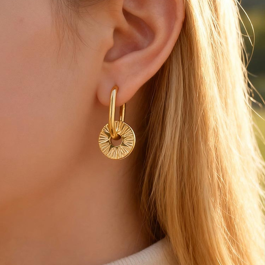 Brincos De Argola Sunburst Dourados De Aço Inoxidável Vnox , Circulares Radiantes Para Mulheres , Presente De Joias Da M