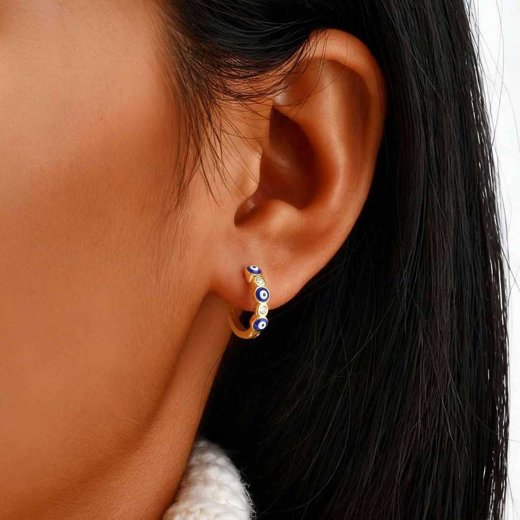 Brincos De Argola Vnox Blue Devil's Eye Banhados A Ouro Hipoalergênicos E Sem Desbotamento Femininos Circulares De Fé Jo