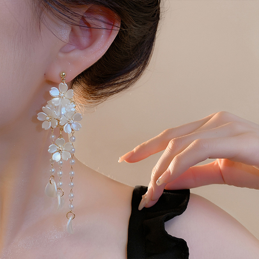 Brincos de borla de flor de concha de luxo leve francesa estilo palácio brincos de nicho de alta qualidade