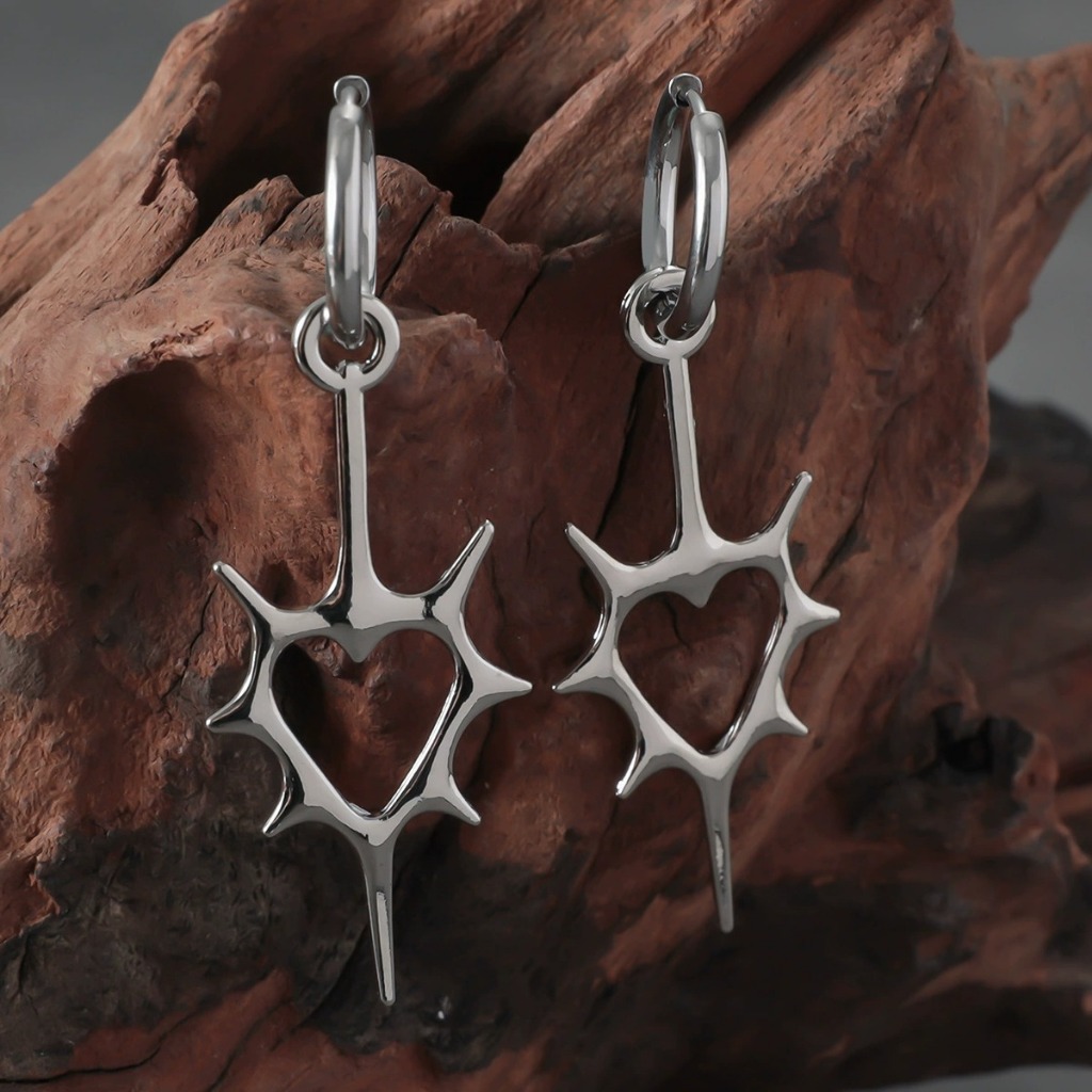 Brincos De Coração Oco Espinhoso , Dark Y2K Sweet Cool Female Spicy Girl Subculture Millennium Eards