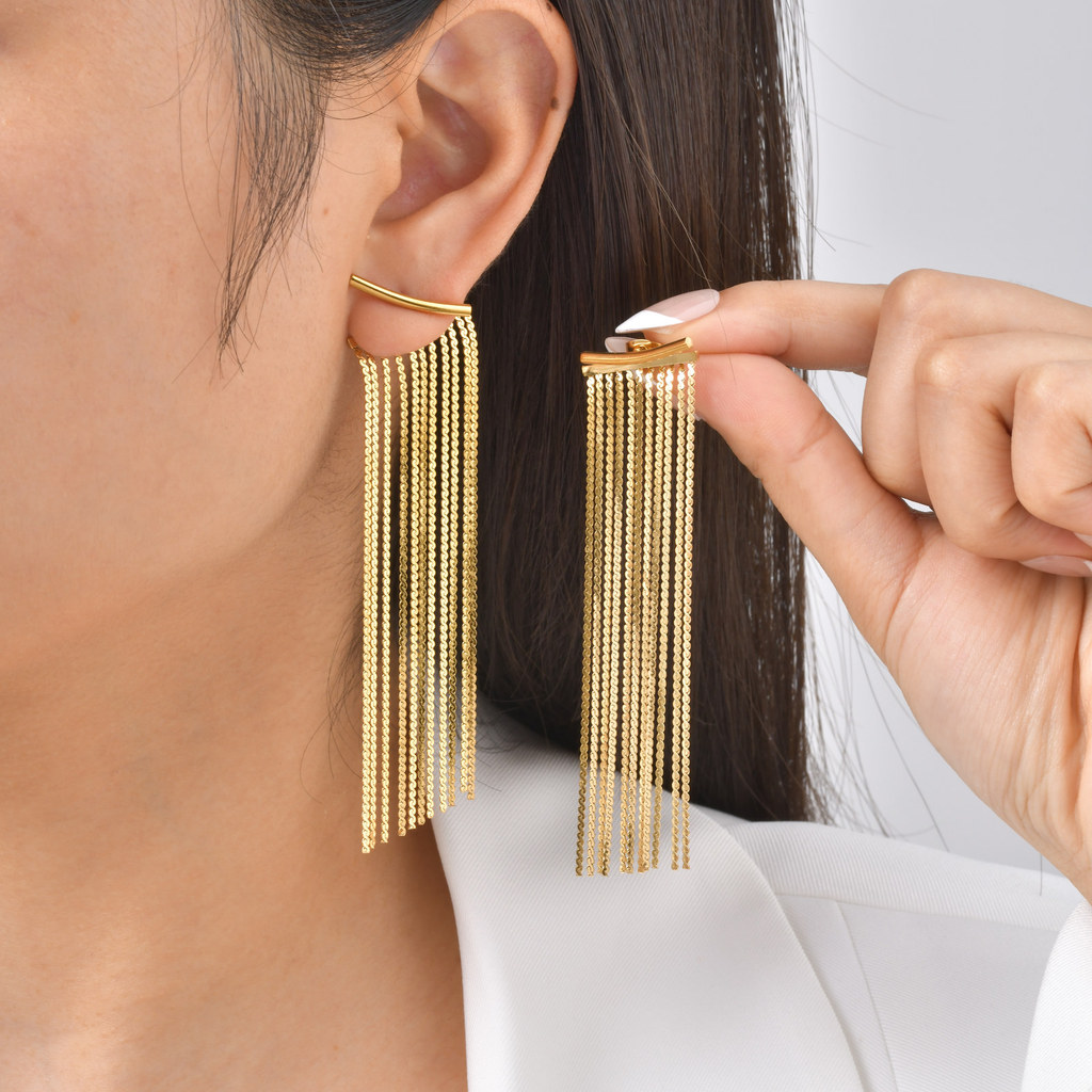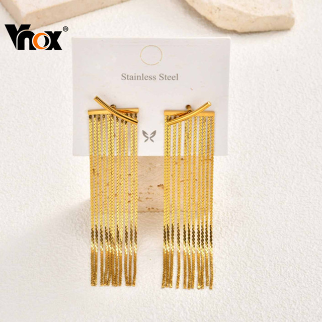 Brincos De Declaração De Borla Longa Vnox Para Mulheres E Meninas , Brinco De Ouro 18K Sem Manchas , Joias De Festa Eleg