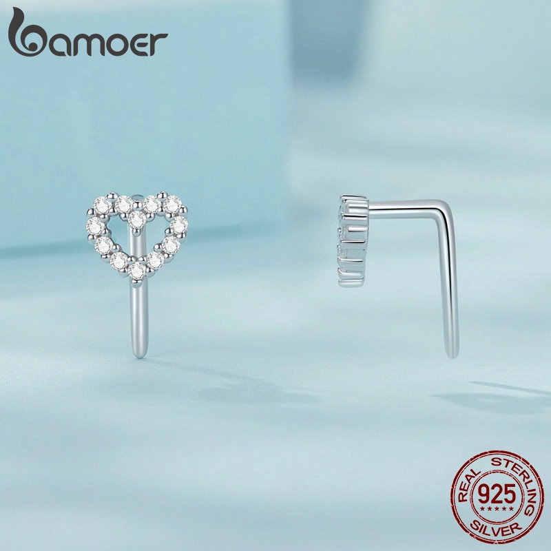Brincos De Fita Bamoer 925 Sterling L Em Forma De Cavilha De Coração Jóias Para Mulheres