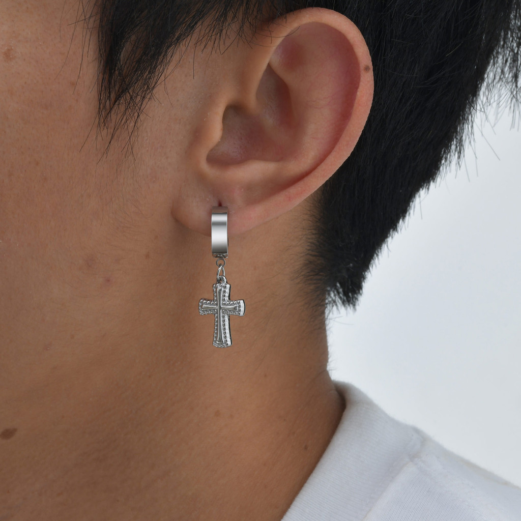 Brincos De Gota Cruzada De Zircônia Vnox Para Homens E Meninos , Brinco De Cruz Unissex De Aço Inoxidável Tendência Reli