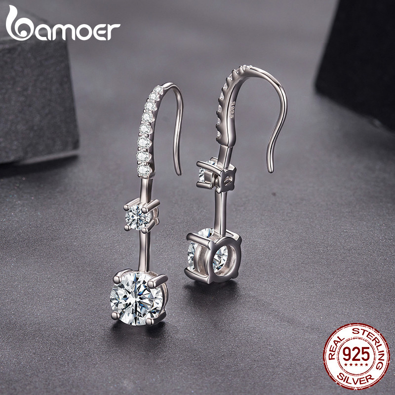 Brincos De Moissanite De Prata Esterlina 925 Bamoer , Joias Brilhantes E Vibrantes , Presente Para Mulheres