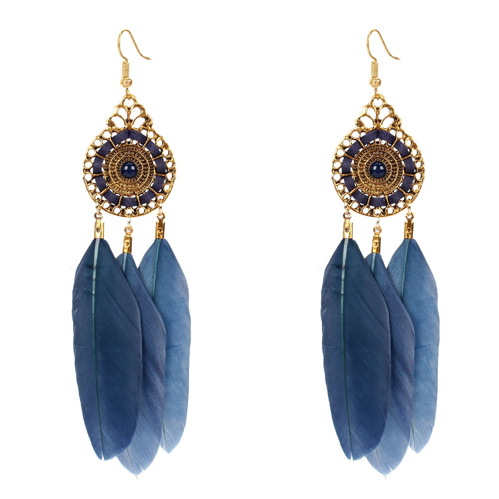 Brincos de Penas com Estilo Boêmio Vintage e Design Étnico Artístico