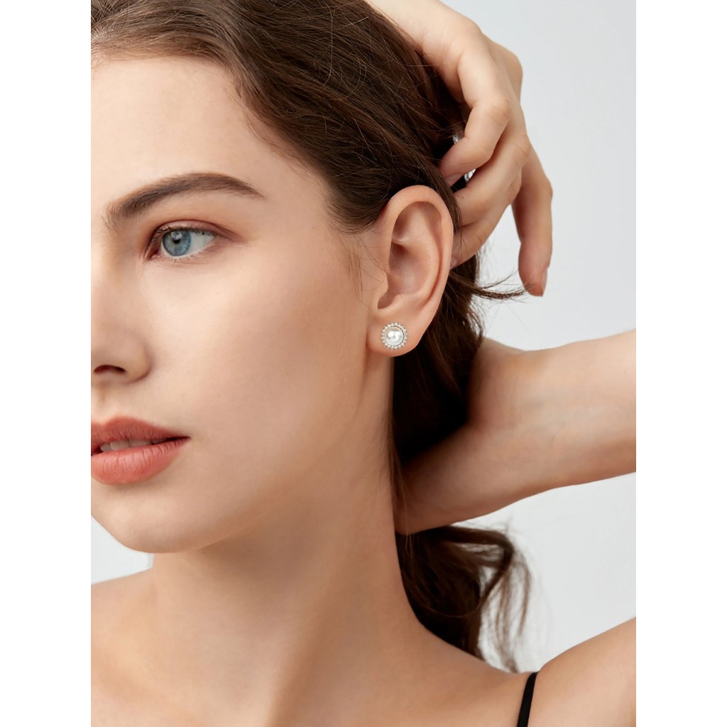 Brincos de pérolas banhados a platina para mulheres com zircônia incrustada, luxuosos e antialérgicos, brincos elegantes