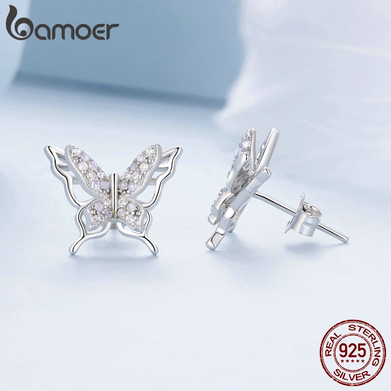Brincos De Prata Bamoer 925 Sterling Em Forma De Borboleta Jóias De Dupla Camada Para Mulheres