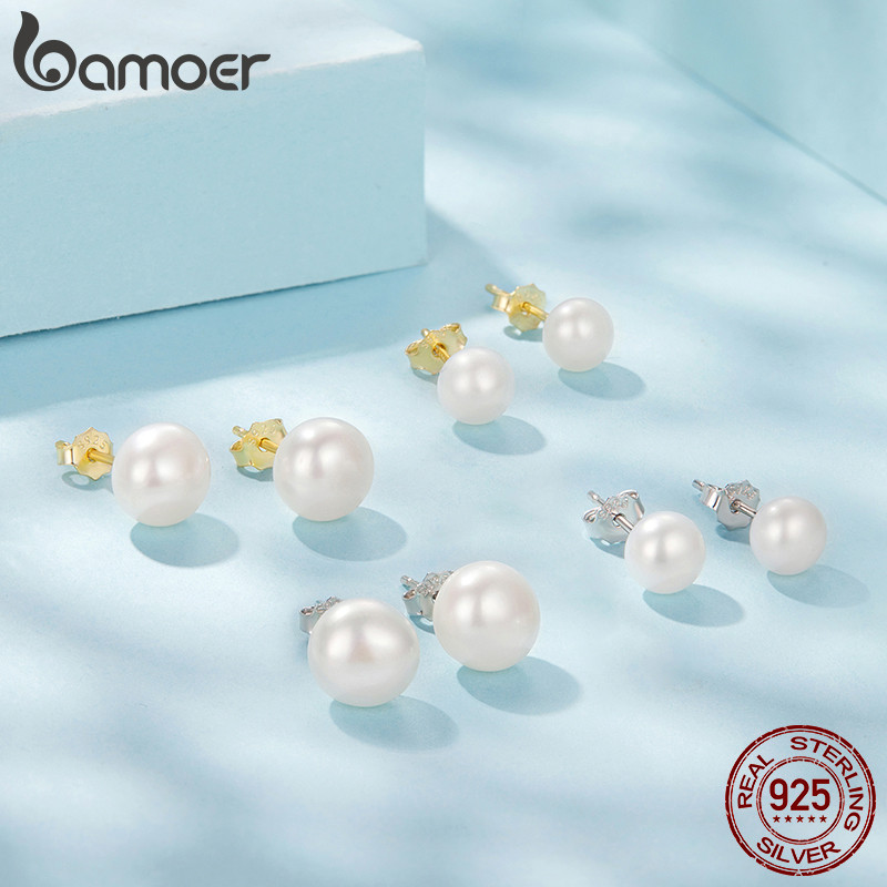Brincos De Prata Esterlina 925 Bamoer , Joias Com Design De Pérolas De Água Doce , Presentes Para Mulheres
