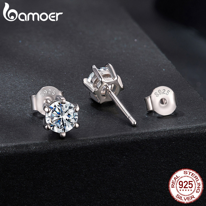 Brincos De Prata Esterlina 925 Bamoer , Joias De Moissanite De Seis Pontas , Presente Feminino