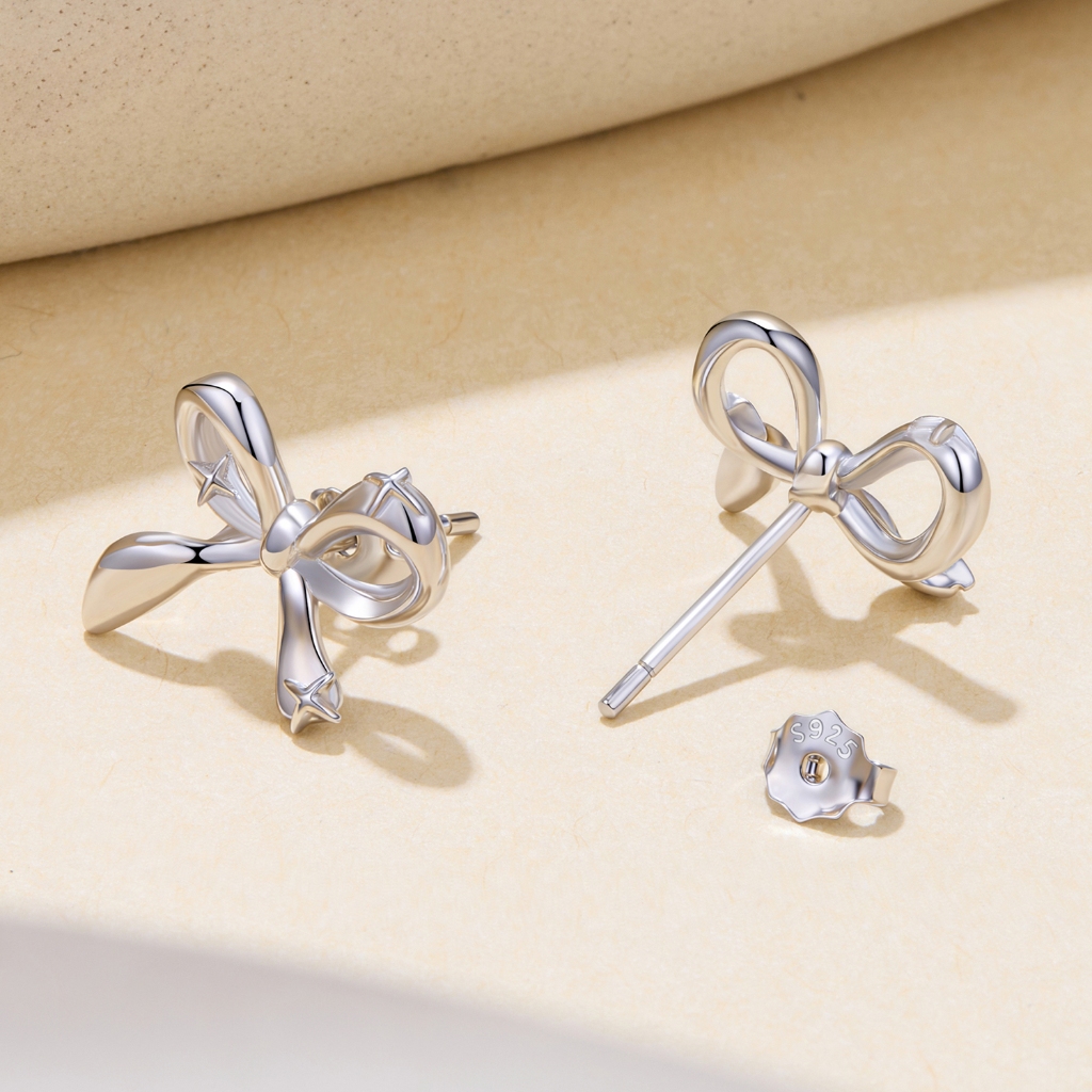 Brincos De Prata Esterlina 925 Bamoer Moda Bowknot Design Joias Presente Feminino