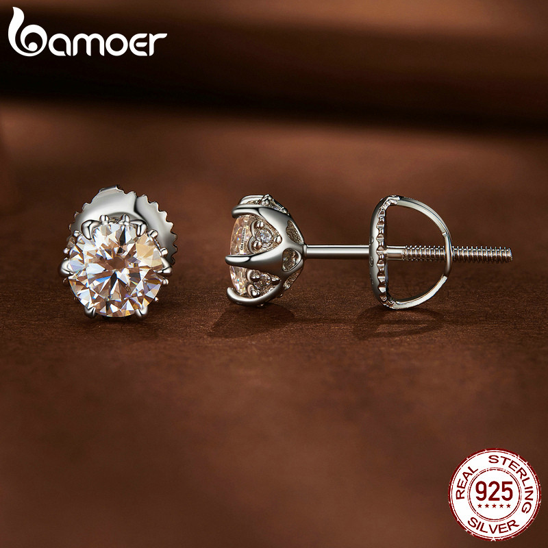 Brincos De Prata Esterlina 925 Bamoer Moissanite De 0.5 Quilates (Dois Certificados) Design Presentes De Luxo Para Mulhe