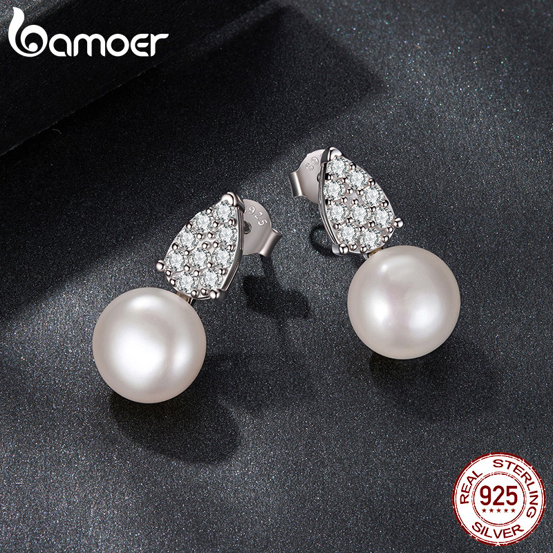 Brincos De Prata Esterlina 925 Bamoer Moissanite Pérola Design Joias Presentes Para Mulheres