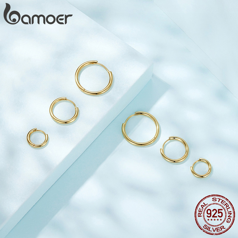 Brincos De Prata Esterlina 925 Bamoer Ouro Design Simples Joias Presente Feminino
