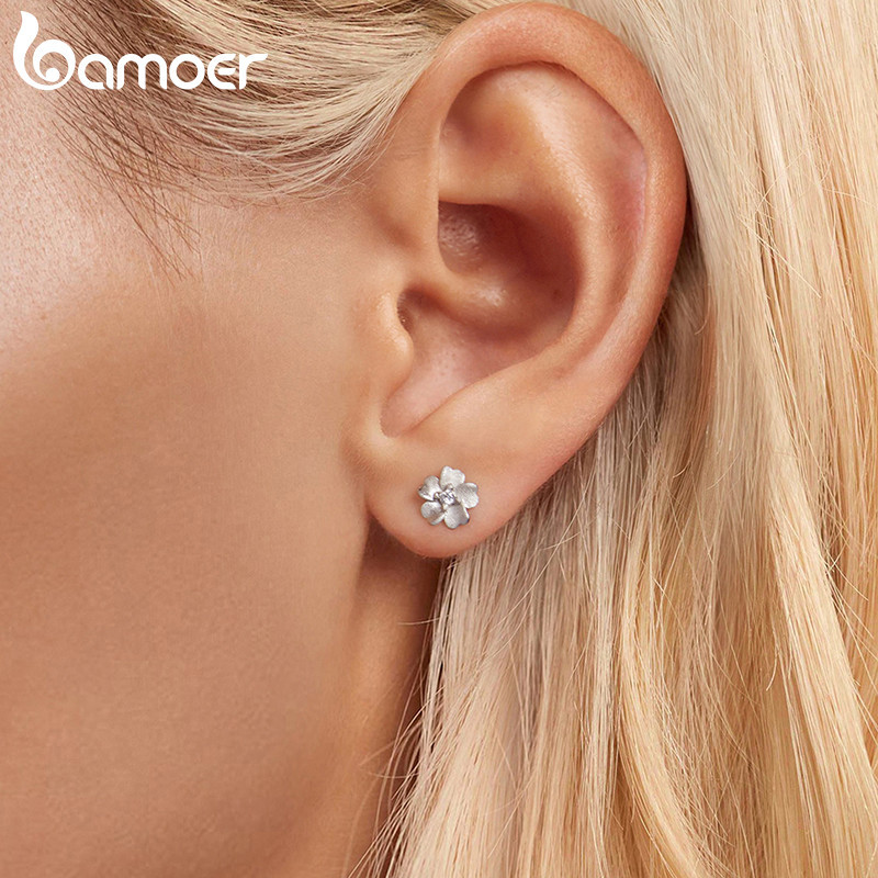 Brincos De Prata Esterlina 925 Bamoer Pequena Flor Branca Joias Presente Feminino