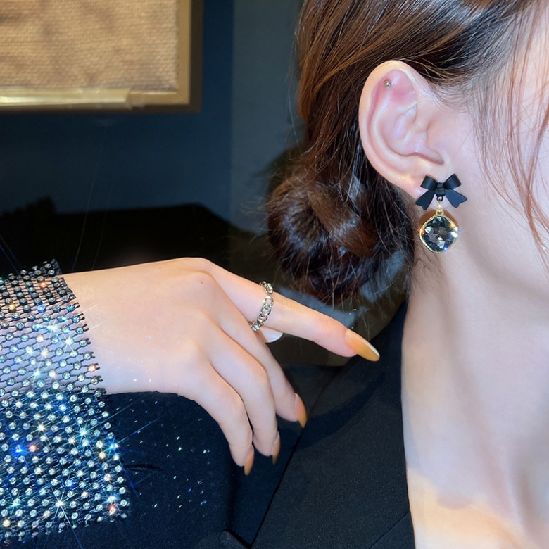 Brincos De zircão Elegante Laço Preto Moda Alta Qualidade Joias