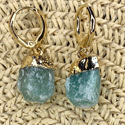 Brincos Feminino Conjunto de Argola Click Dourada em Pedras Naturais, Brinco Pendentes