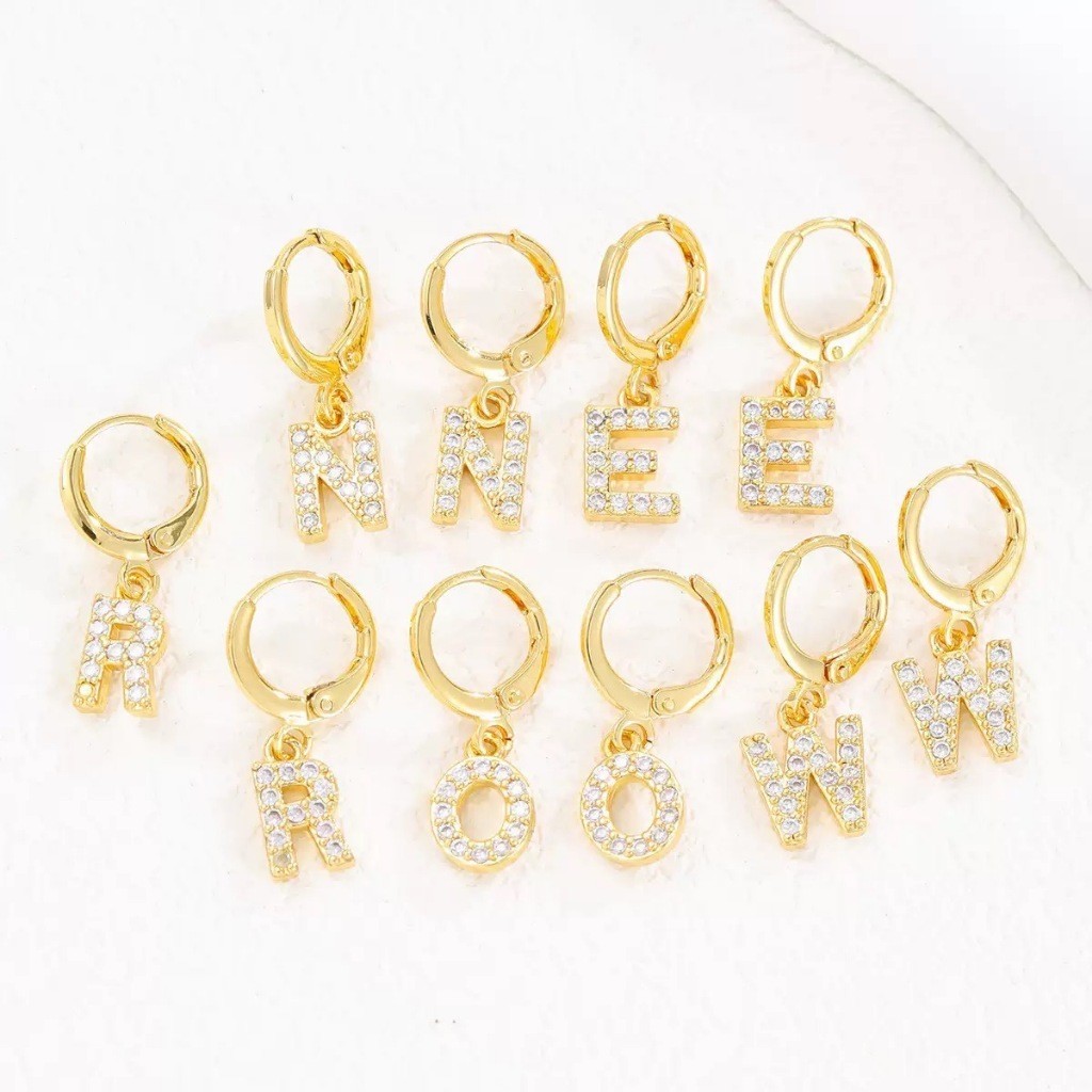 Brincos femininos de alta qualidade com pingentes das letras A - Z incrustados com zircônia