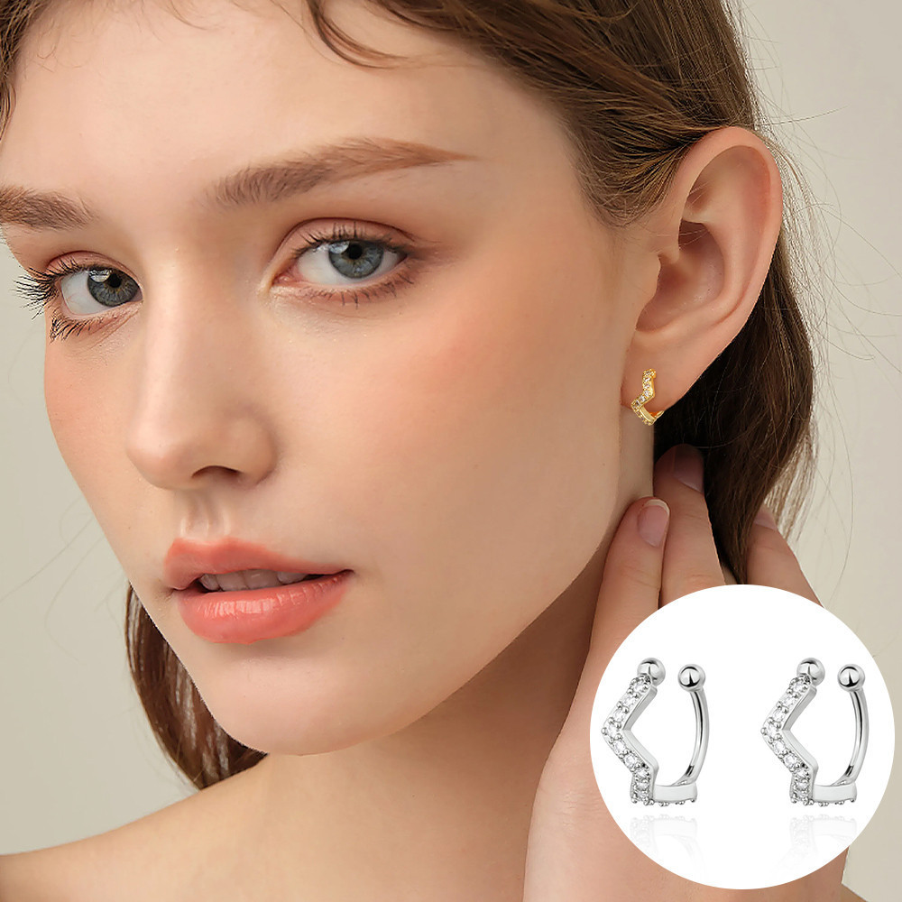 Brincos Femininos Delicado Elegante Antialérgico Tarraxa De Clipe De Irregular Piercing Fake Folheado Platina Zig-Zag Zircônia Cravejada