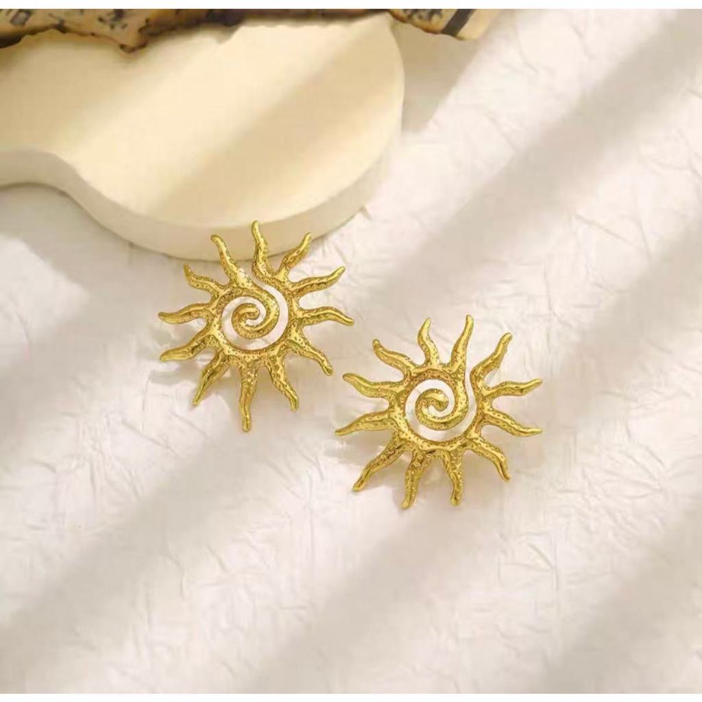 Brincos Femininos Dourados em Formato de Sol – Design Artístico e Elegante com Brilho Luxuoso