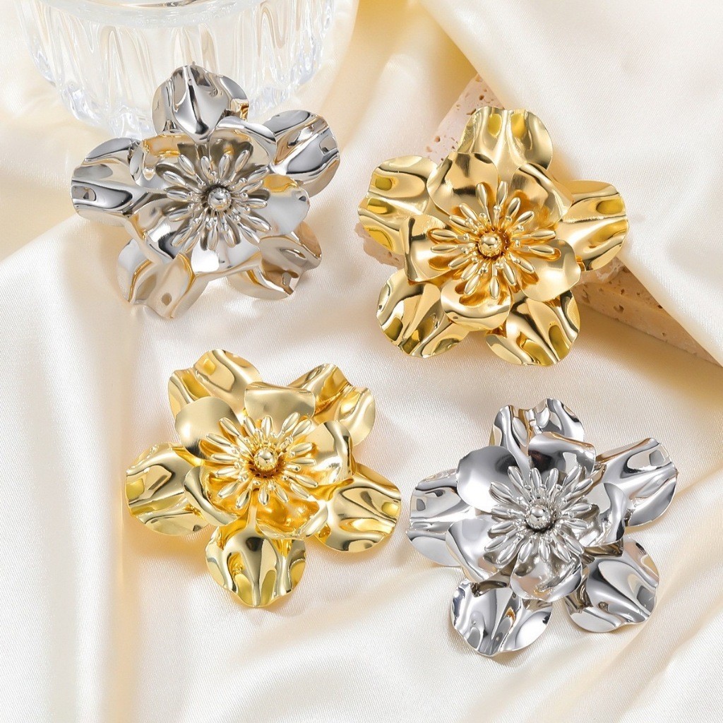 Brincos Femininos Folha Meia Pétala Flor Folheado a Ouro 18k E Prata 925 Acessórios Femininos Brinco Dourado