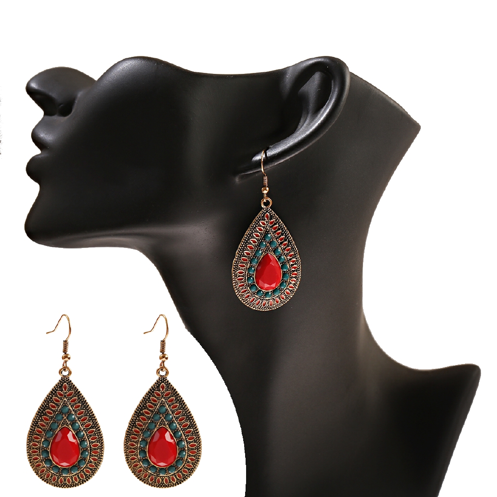 Brincos Femininos Gota De Água Cor Dourada Estilo Vintage Pendurados Por Gotejamento Vermelho Bijuteria Feminina