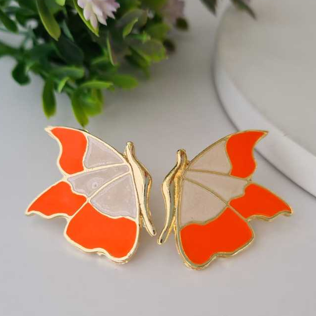 Brincos Grande Borboleta Asa Borboleta Esmaltado Dourado Folheado a Ouro 18k Diversas Cores Colorido Moda 2025
