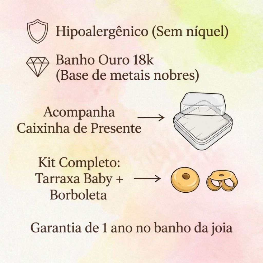 Brincos Infantis Trio Hipoalergênicos Banhados a Ouro 18k com Tarraxa Baby e Caixinha Acrílica