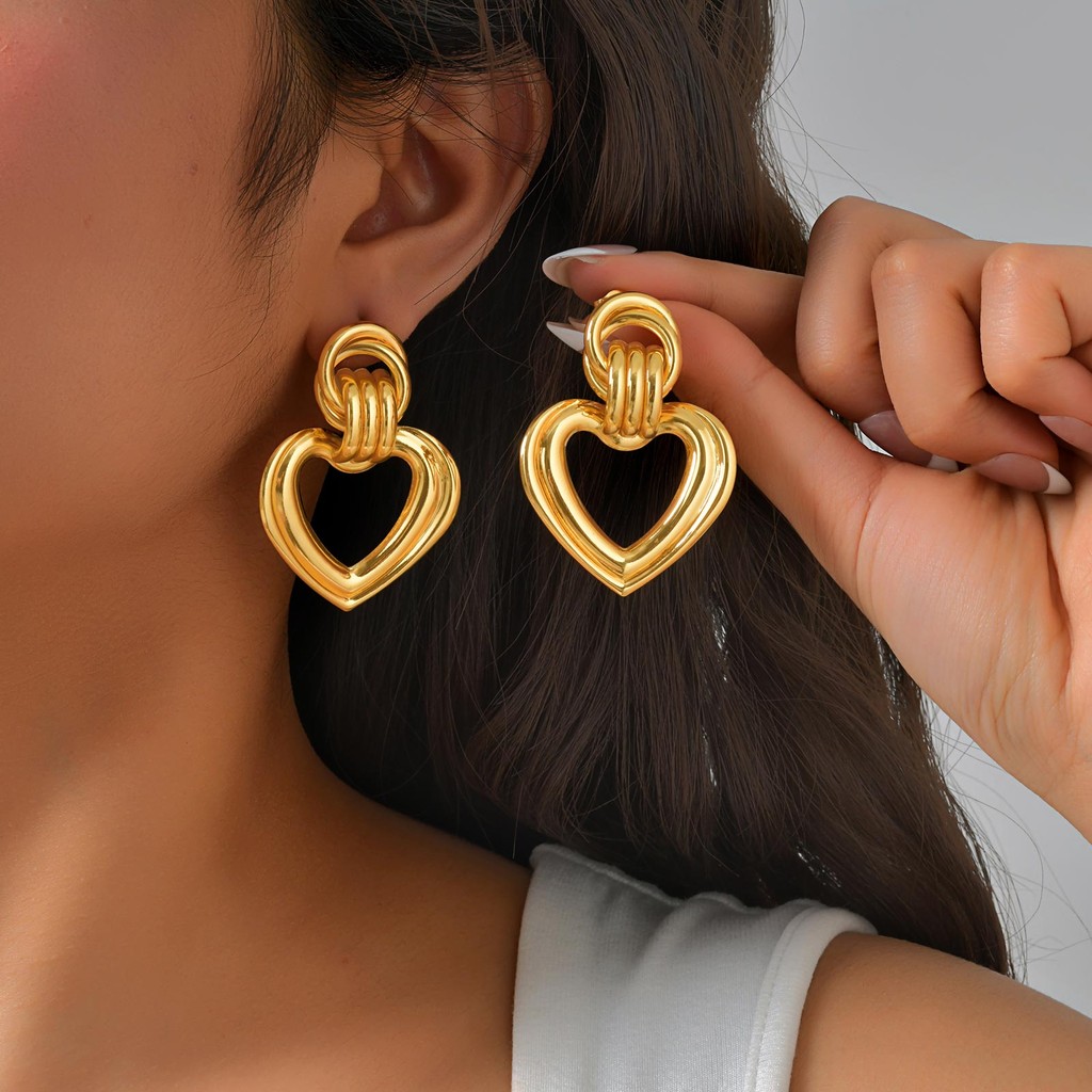 Brincos Ocos Em Forma De Coração Vnox Para Mulheres , Sem Desbotamento De Aço Inoxidável Dourado 18k , Presente De Joias
