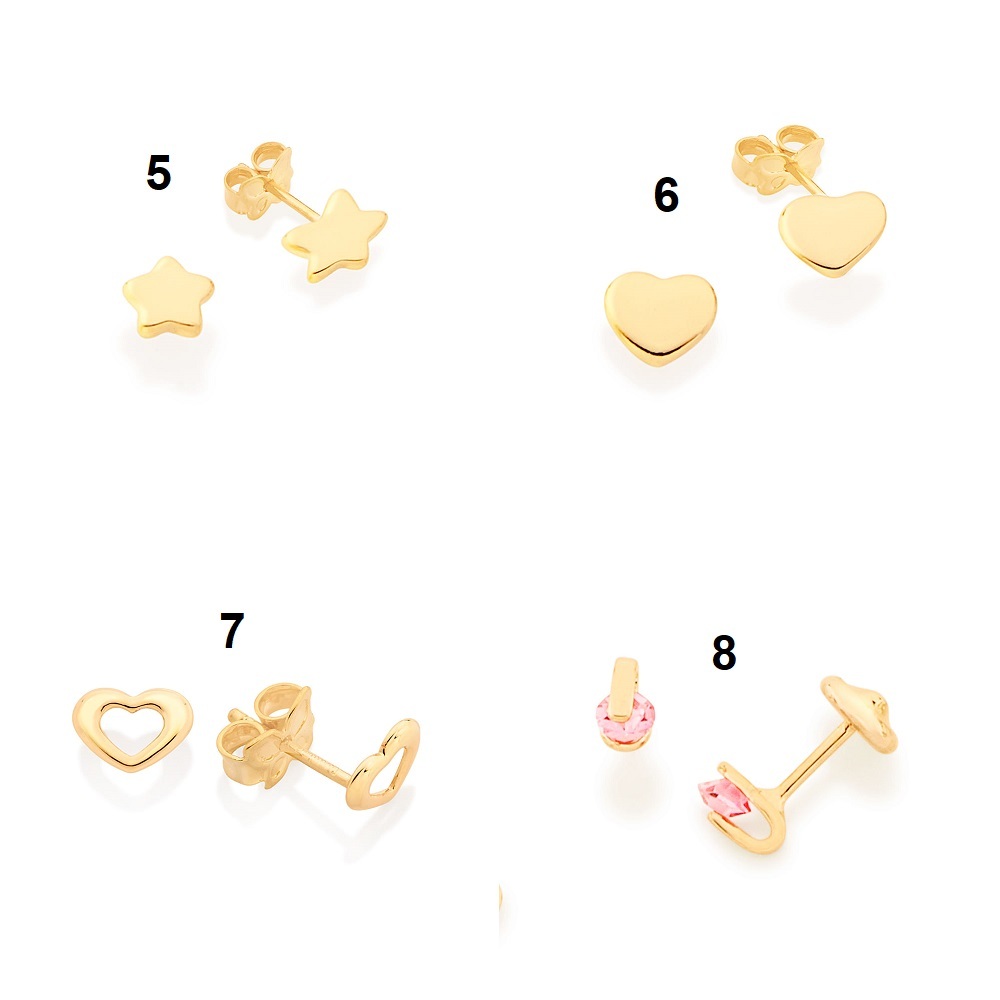 (1)Brinco borboleta. med 0,4 cm x 0,5 cm (2)Brinco formato cruz. med. 0,80 cm x 0,50 (3)Brinco solitário cravejado por 2 zircônias de 2,75 mm (par). med 0,30 cm x 0,30 cm (4)Brinco infantil flocos de neve.med 7mm de diâmetro (5)Brinco estrela. med. 0,30 cm x 0,30 cm (6)Brinco coração liso. med. 0,2 cm x 0,4 cm (7)Brinco formato coração vazado. med. 0,60 x 0,50 cm. (8)Brinco infantil com 2 cristais facetados, (par). med 0,5 cm x 0,3 cm (9)Brinco formato coração com flecha. med. 0,4 mm (10)Brinco solitário formado por 2 zircônias gota de 5x7mm (par). med 0,7 x 0,5 cm (11)Brinco solitário tubo com 2 cristais de 2 mm. med 3mm de diâmetro (12)Brinco formato 2 corações lisos grudados. med 0,80 cm x 0,50 cm PRODUTO 100% ORIGINAL DA ROMMANEL, ACOMPANHA O CERTIFICADO DE GARANTIA ROMMANEL COMO IDENTIFICAR UMA JÓIA AUTENTICA ORIGINAL ROMMANEL A autenticidade da joia Rommanel está garantida em cada peça com a presença da borboleta, símbolo da qualidade dos produtos. A identificação é feita nas tarraxas dos brincos, nas contra-argolas dos cordões e pingentes, bem como na parte interna dos anéis uma borboleta minuscula em baixo relevo. Ao comprar uma joia folheada Rommanel verifique se ela está corretamente identificada e acompanhada da etiqueta com código de barras exclusiva e certificado de garantia. OBS: SE FICAR NA DÚVIDA, PODE VERIFICAR A AUTENTICIDADE E ORIGINALIDADE DA PEÇA EM QUALQUER LOJA ROMMANEL JOIAS HIPO-A.LER.GÊ.NI.CAS A NÍQUEL O níquel é um metal que pode desencadear der.ma.tite alér.gi.ca, reação que provoca co.ce.ira e verme.lhidão na pele. Por isso, a empresa adotou os padrões internacionais para a confecção de suas joias, firmando seu compromisso de peças 100% livres de níquel e chumbo em sua composição. SINÔNIMO DE QUALIDADE A ROMMANEL é sinônimo de qualidade. Isso porque suas joias são fabricadas com as melhores matérias-primas e tem acabamento artesanal de joalheria. Na fabricação das joias é utilizada a mais moderna tecnologia de eletrodeposição de metais. O controle desse processo é feito com laboratórios e maquinário de última geração, oferecendo a seus consumidores produtos com padrão internacional de qualidade. A ROMMANEL PRODUZ JOIAS FOLHEADAS A OURO 18K, JOIAS FOLHEADAS A RHODIUM, JOIAS FOLHEADAS A PLATINA, JOIAS FOLHEADAS A RHODIUM NEGRO E JOIAS EM AÇO. Nossas joias são produzidas dentro dos mais rigorosos padrões de qualidade. A espessa camada de ouro 18k e/ou rhodium depositadas em nossas peças – superior à média de mercado – garante acabamento semelhante ao de uma joia maciça e uma durabilidade superior , em relação a outras joias folheadas. No entanto, recomendamos alguns cuidados que vai descrito no certificado de garantia para manter sua joia sempre como nova. BANHO DE OURO A quantidade de ouro, associada a alta tecnologia com acabamento artesanal, assegura que a qualidade da joia Rommanel seja muito superior à média do mercado. Cada peça recebe 3 camadas de ouro e passa por análise minuciosa para certificar a quantidade depositada. Esse compromisso garante que as joias possam ser utilizadas por muito tempo, permanecendo como novas.