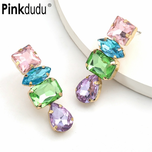 Brincos Pinkdududu Square Drop-shaped Stud Liga De Vidro Diamante Super Flash Exagerado Moda Geométrica Série Para Jóias Mulher PD347