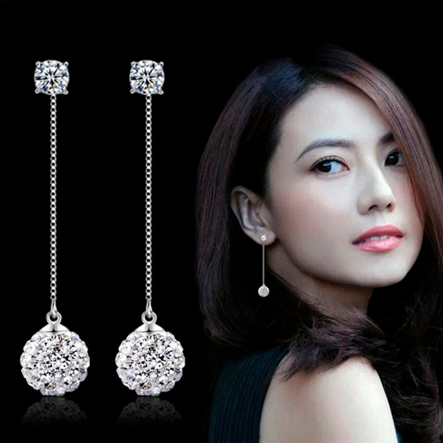 Brincos Prateado Strass Sobrepor Delicado Feminino Festa Lon