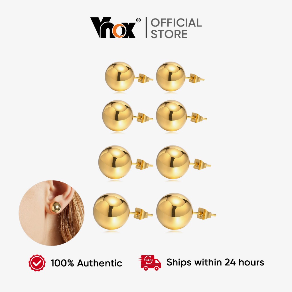 Brincos Redondos De Bola Vnox Para Mulheres , Coleção De Leve Com Banho De Ouro 18K Jóias Simples 6mm-12mm