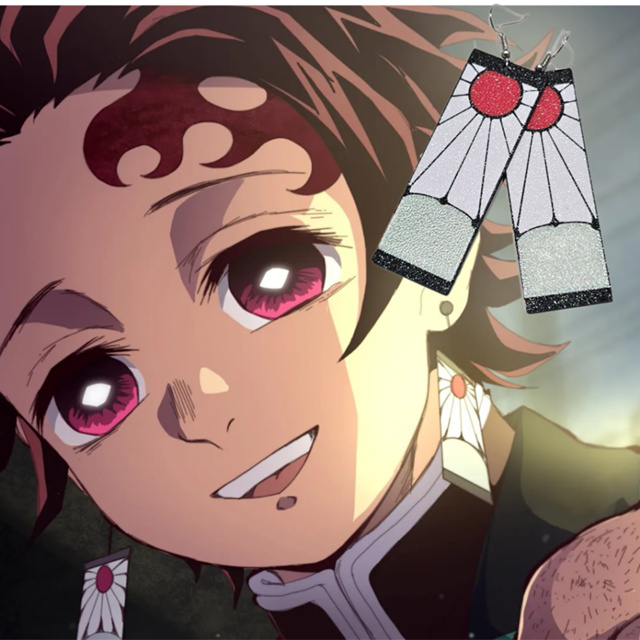 Brincos Tanjiro Kimetsu no Yaiba hanafuda – Anime Geek | Acompanha Brinde | Acabamento Resinado