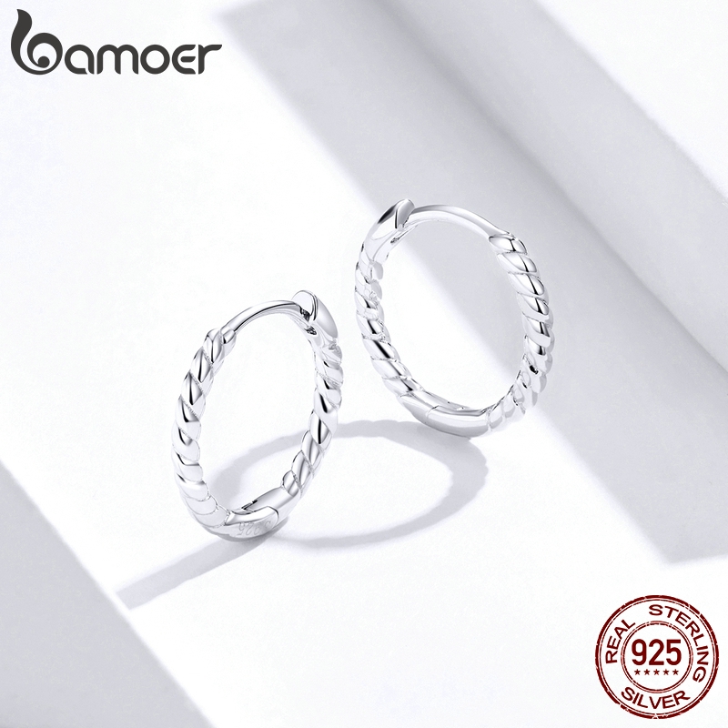Brincos Torcidos Geométricos Bamoer Com Clipe Em Prata 925 Moda Feminina